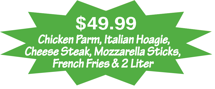 (2) Large Pizzas, (50) Buffalo Wings & (1) 2-Liter Soda